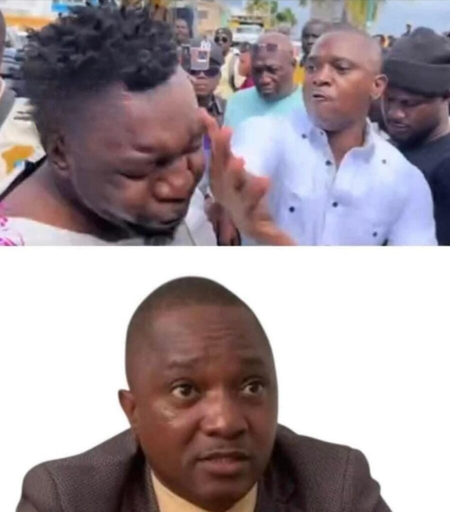 Capture d’écran d’une vidéo devenue virale montrant le commissaire du gouvernement giflant le présumé agresseur, alors que celui-ci était déjà menotté et maîtrisé, sur le boulevard de Carénage au Cap-Haïtien, le 9 janvier 2026.