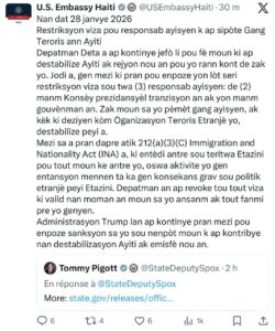 WhatsApp Image 2026-01-28 at 7.24.53 PM Continue ReadingPrevious Après la dénonciation du RHAJAC, Washington impose des sanctions contre les conseillers Leslie Voltaire, Smith Augustin et le ministre Alfred Fils Metellus