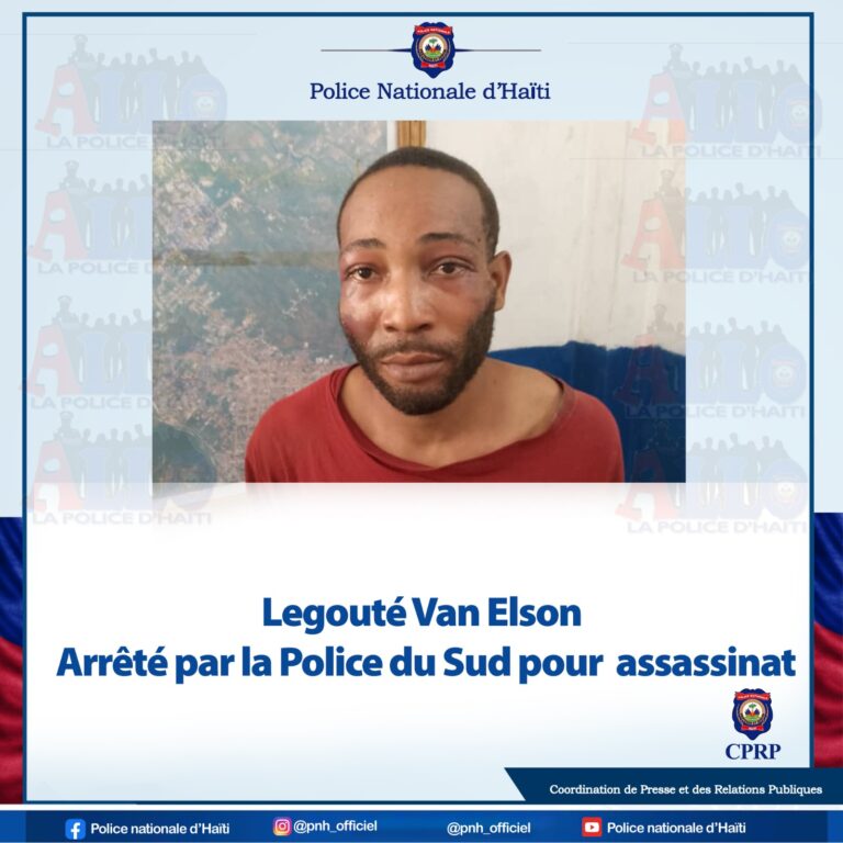 Legouté Van Elson a été arrêté par la Police du département du Sud en Haïti pour son implication présumée dans...