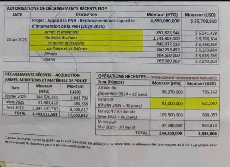 Entre janvier et avril 2025, l’État haïtien a débloqué environ 334,35 millions de gourdes, soit près de 2,56 millions de...