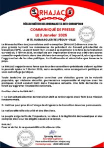 WhatsApp Image 2026-01-03 at 3.27.52 PM Continue ReadingPrevious Corruption au CPT : le RHAJAC dénonce les démarches de Laurent Saint-Cyr visant à s’éterniser au pouvoir après un passage inefficace au sein du HCT et du CPT