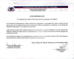 WhatsApp Image 2025-11-17 at 1.50.48 PM Continue ReadingPrevious Fermeture immédiate des clubs et boîtes de nuit pour raisons de sécurité à Tabarre