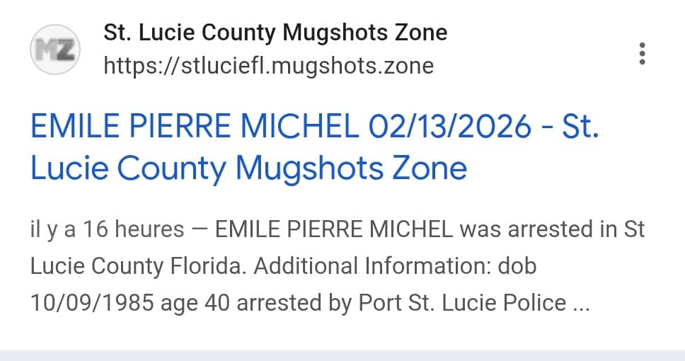 Arrêté en Floride, l’artiste Emile Pierre Michel a été remis en liberté moins de 24 heures après son interpellation, selon plusieurs sources concordantes. Cette libération serait intervenue sous caution. L’arrestation a eu lieu dans le comté de St. Lucie County, où son nom figure dans les registres de la police locale.