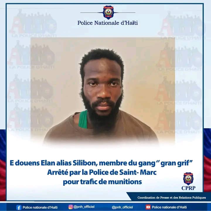 La des agents de la Police nationale haïtienne, en détachement à Saint-Marc, ont arrêté, le mercredi 6 août 2025, Edouens Elan alias Silibon, cousin du chef de terroriste de Savien, Luckson Elan. Il est accusé d’implication dans le trafic de munitions destinées au groupe criminel « Gran Grif », actif dans le département de l’Artibonite. Cette arrestation s’inscrit dans les efforts des forces de l’ordre pour affaiblir les réseaux d’approvisionnement des groupes terroristes.