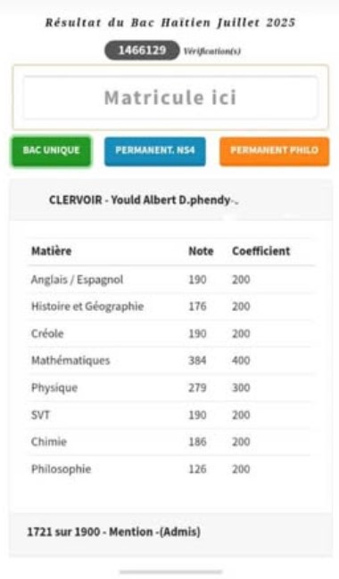 Clervoire Yould Albert D. Phendy, élève du Collège Jean XXIII de Gros-Morne, dans le département de l’Artibonite, a créé la surprise en obtenant 1 721 points sur 1 900, soit une moyenne de 9,058 sur 10, à l’examen officiel du baccalauréat 2024-2025 en Haïti. Considéré comme « timoun andeyò » – un enfant de la campagne souvent sous-estimé – il a surpassé tous les candidats du pays. Ce résultat fait de lui le lauréat national de cette session.