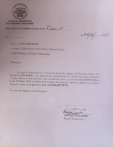 IMG-20260303-WA0048 Continue ReadingPrevious Haïti : l’ex-sénateur Moïse Jean-Charles convoqué par le juge d’instruction Benjamin Filismé pour incitation à la violence