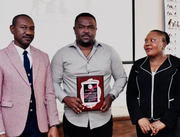 Macéant Jean-Philippe, au milieu de deux autres personnes, honoré pour son engagement envers les enfants, le 14 février 2026.