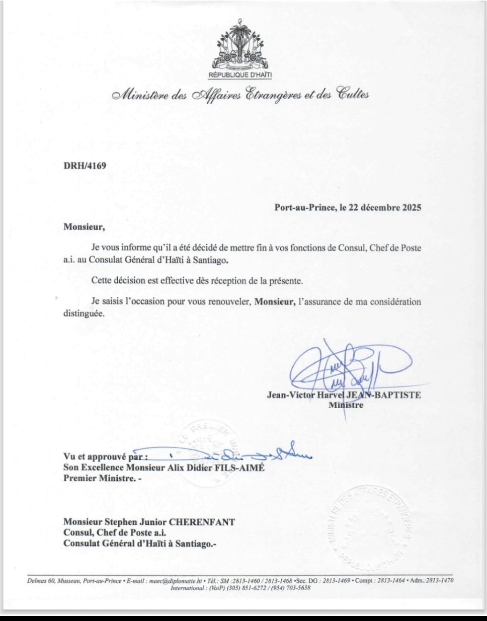1004758668 Continue ReadingPrevious Nommé sous pression politique, le consul Stephen Junior Cherenfant révoqué pour avoir refusé d’obéir à son parrain corrupteur Emmanuel Vertilaire