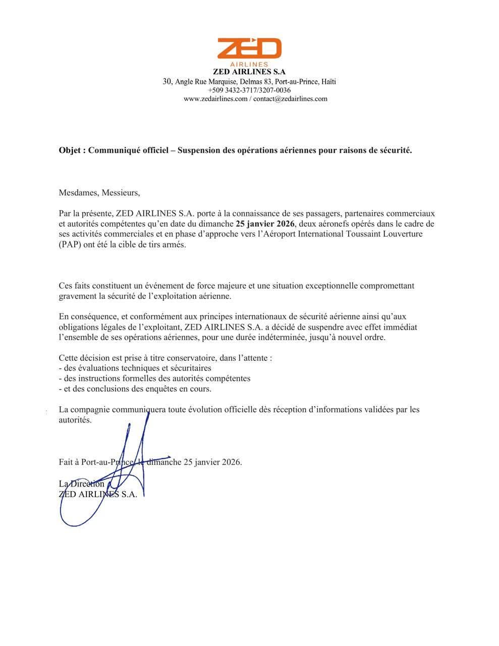 WhatsApp Image 2026-01-25 at 10.00.17 PM Continue ReadingPrevious Tirs sur des avions, vols suspendus : l’insécurité qui élimine la concurrence au profit de Sunrise Airways